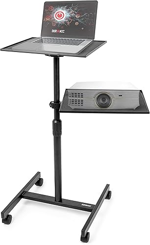 Duronic WPSLS2 Table de Travail Mobile Bureau Assis-Debout Support à roulettes pour PC ou projecteur Hauteur ajustable de 67,5 à 100 cm 2 plateformes de 42,4 x 37,4 cm Capacité 10 kg