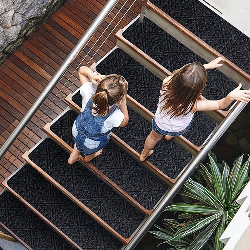 COSTWAY Lot de 15 Marchettes d'Escalier Antidérapant 20 x 76 cm Tapis de Protection Autocollants, Sécurité pour Enfants, Personnes Agées et Animaux Domestiques avec Adhésif Réutilisable (Gris)