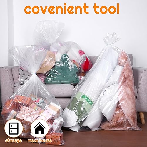 taonganui Lot de 6 grands sacs de rangement en plastique transparent - 120 x 140 cm - Réutilisables - Grands sacs de rangement pour l'étanchéité à la poussière, bagages, vêtements