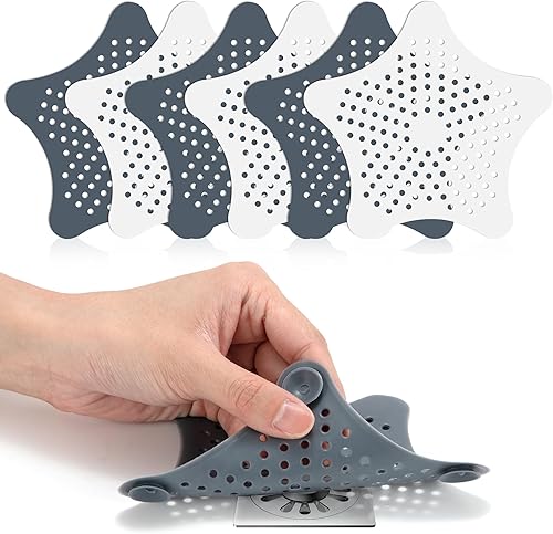 Yesaler Filtre Evier de Cuisine Filtre à Cheveux Douche pour Cuisine Baignoire avec 5 Ventouses Protection de Drain 6 Pièces Blanc Gris