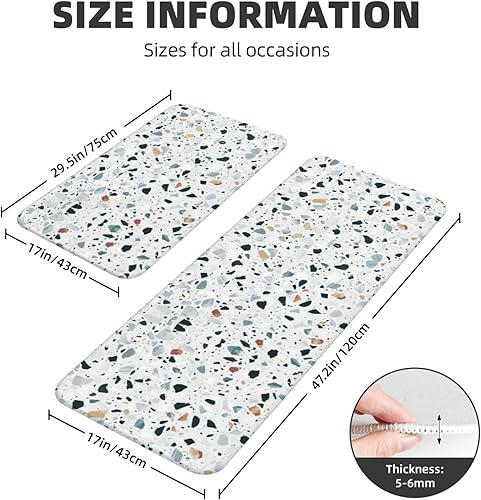 YQxwJL Terrazzo Lot de 2 tapis de cuisine antidérapants et imperméables Motif marbre pastel Pour couloir bureau