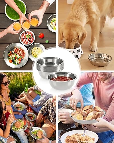QLEUIFT 12 PCS Bols à Sauce Bols à Trempette Assiette Acier Inoxydable Mini Assiette à Snacks Bols en Acier Inoxydable Petits Bols sont inoxydables Bol à Sushi pour Toutes Sortes d'épices, 8CM