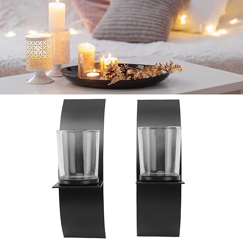 2 Ensembles de Bougies Murales, Bougeoir Mural en Métal, Bougeoir Mural, Plateau de Bougie en Fer, Design Incurvé 3D Noir, Décoration Murale en Fer pour Chambre à Coucher, Salon, Salle à Manger