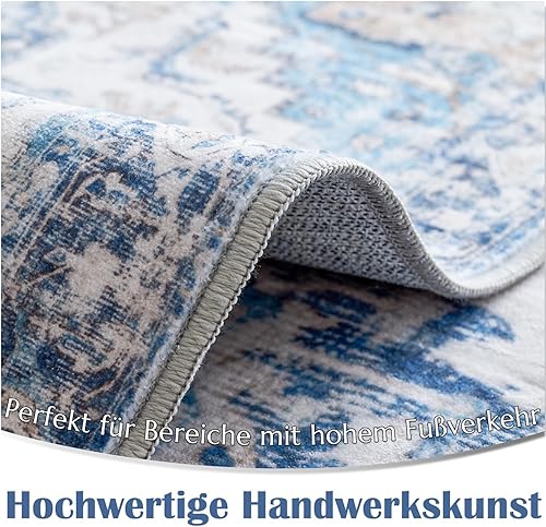 TOPICK Tapis de sol, 80 x 120 cm, lavable, à poils courts, style rétro, bleu, motif floral, antibactérien, pliable, antidérapant, fin, pour entrée, cuisine, couloir, chambre à coucher