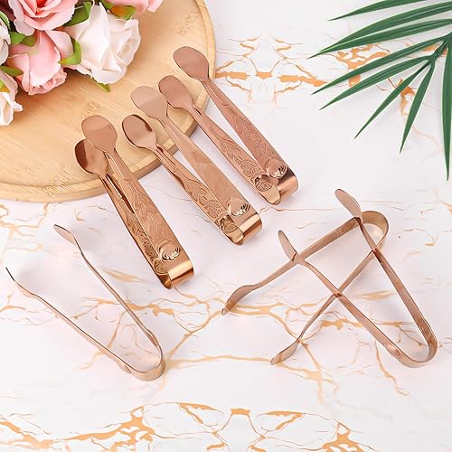BOXOB 6pcs Mini-Pinces à Sucre, 10,5cm Petites Pinces de Service avec Motif Rose en Acier Inoxydable pour Apéritifs Planches de Charcuterie Desserts et Cafés (Or Rose)