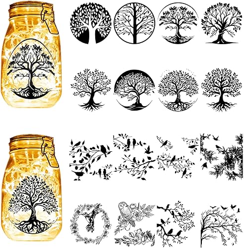 CREATCABIN 24 pièce Silhouettes Fées Pot Mason,Lanterne d'ange,Découpes Laser,Ornements,Champignons,Papillons,Scrapbooking pour Verre Dépoli,Murs,Fenêtres,Voitures 10x9cm(sans Autocollant)