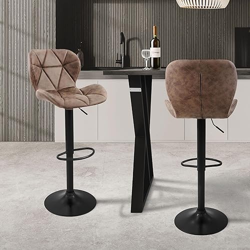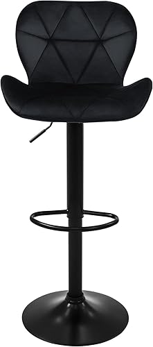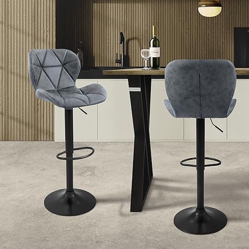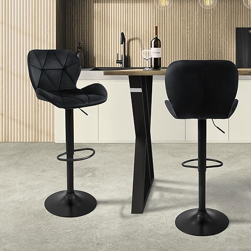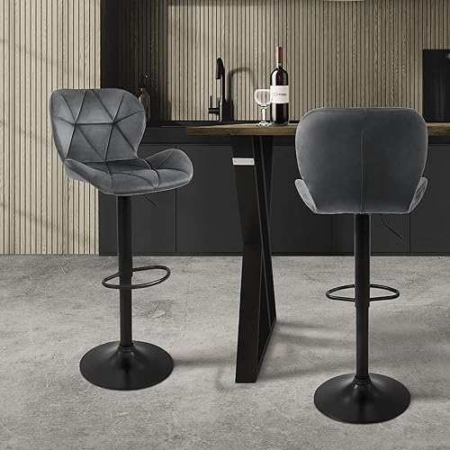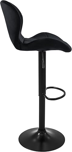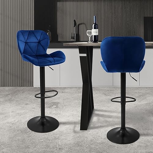 ML-Design Lot de 2 Tabourets de Bar en Velours, Bleu, Chaise Rembourrée avec Dossier et Repose-Pieds, Réglable en Hauteur 59-79 cm, Pivotante à 360°, Tabouret de Comptoir, Cuisine, Pub, Bar de Maison