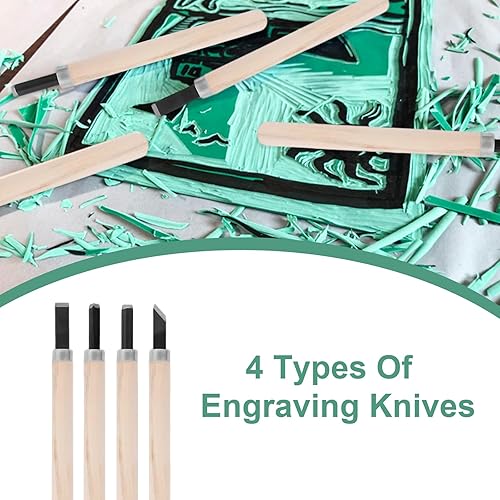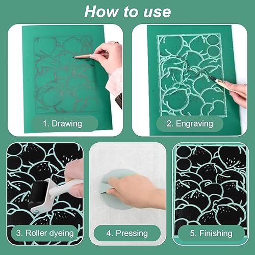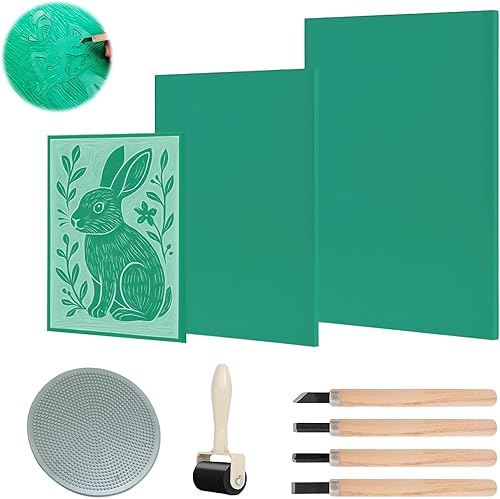 Kit de Gomme Linogravure Plaque A4 A5 A6 9Pcs Linogravure Plaque Kit Linogravure Caoutchouc Block Printing Starter Linoleum Plate avec Outils de Sculpture, pour la Gravure,Le Bricolage Artistique