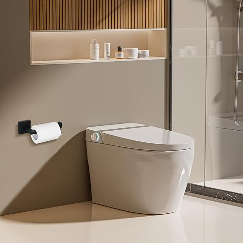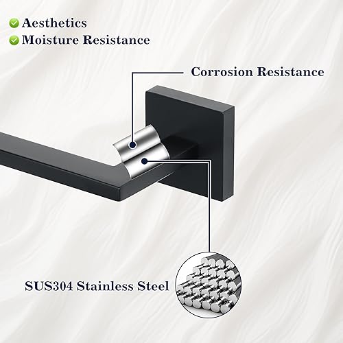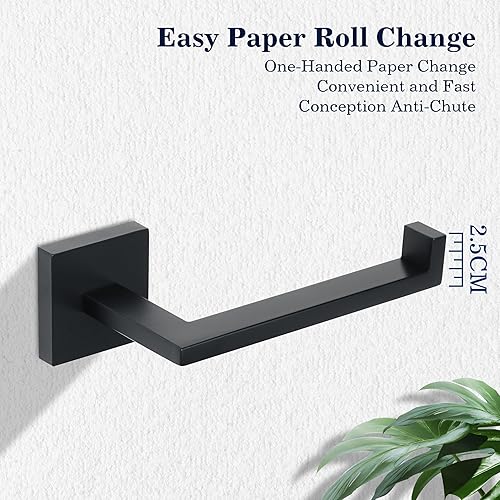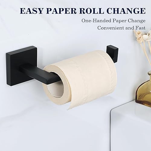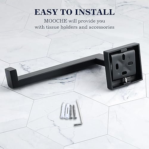 Mooche Porte Rouleau Papier Toilette, Longeur 15.5 CM, Papier Toilette Mural pour Salle de Bain/Cuisine, en Acier Inoxydable SUS 304, Antirouille et Pratique, Noir (Carré)