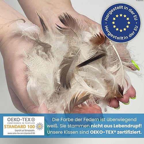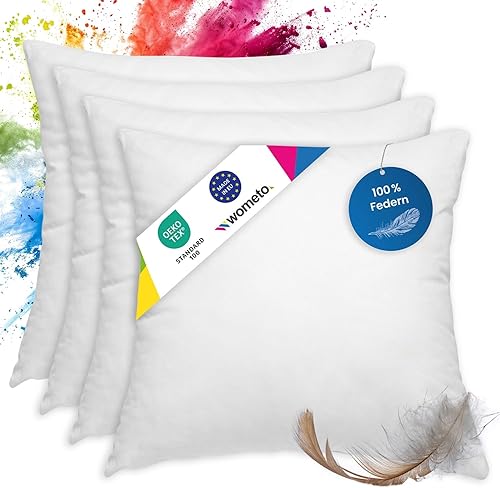 wometo Lot de 4 oreillers 100% Plumes 55x55 cm - 750g oekoTex Coussin de Remplissage Housse Coton Blanc I Oreiller intérieur/Remplissage de Coussin/Petit Oreiller (4 pièces)