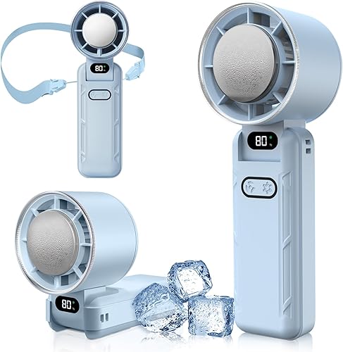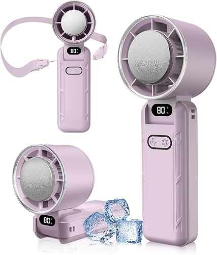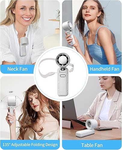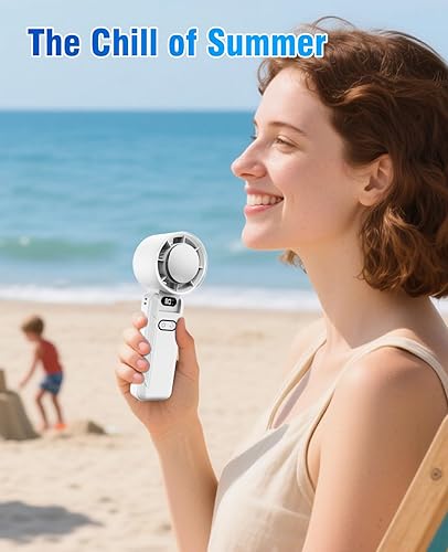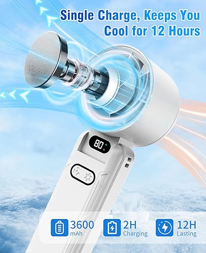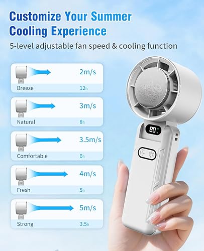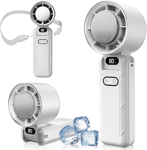 DAORANGE Mini Ventilateur Portable, Ventilateur de Poche à 5 Vitesses avec Refroidissement, 3600mAh Rechargeable via USB, Écran LED, pour Camping, Extérieur, Voyages et Vacances à la Plage (Blanc)