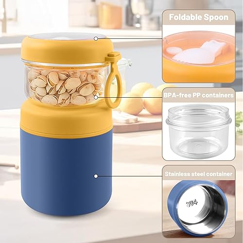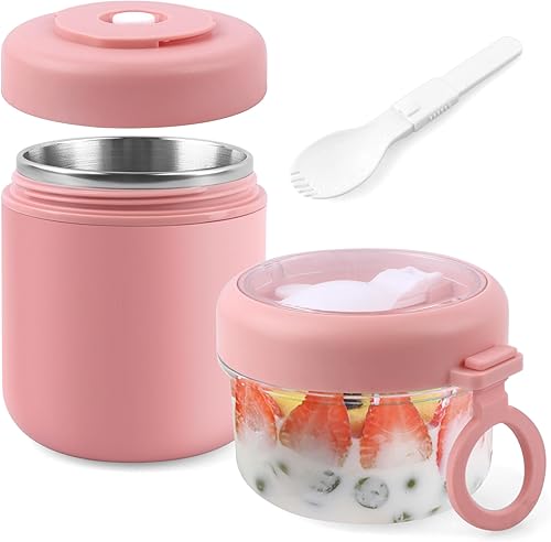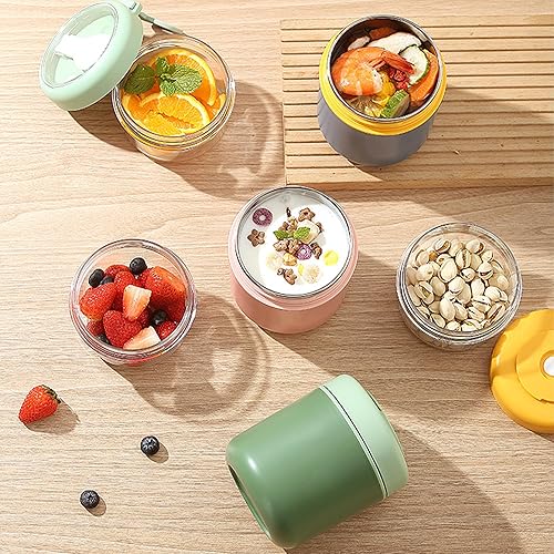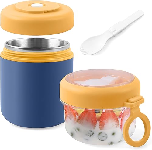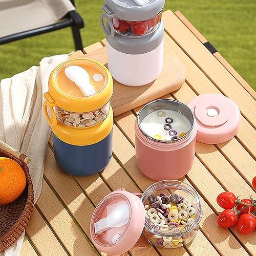 Acasimo Gobelet à céréales en acier inoxydable à emporter, gobelet à yaourt à emporter, avec cuillère, 530 ml + 330 ml, gobelet portable anti-fuite, adapté au congélateur, au lave-vaisselle (blanc)