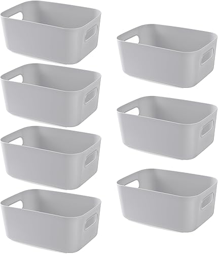 HapiLeap Lot de 7 Boîtes de Rangement en Plastique, Plusieurs Couleurs Paniers de Rangement Pour Cuisine, Placard, Bureau, Salle de Bain, Jouets, Maison (7 Pack)