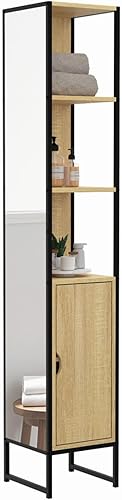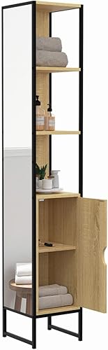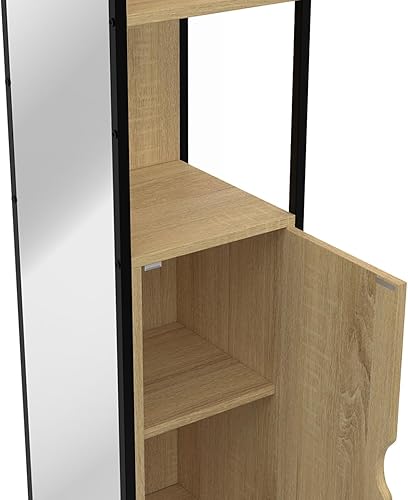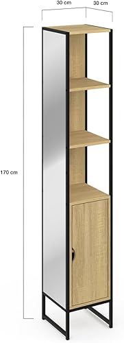 IDMarket - Meuble colonne salle de bain DETROIT 1 porte avec miroir et étagères design industriel