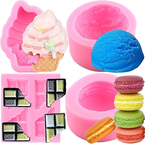 RFGHAC Lot de 4 moules en silicone pour macaron, hamburger, boule de glace, fondant, chocolat au lait, moule pour décoration de gâteau, décoration de cupcakes, bonbons, résine, bougie, savon, bombe de