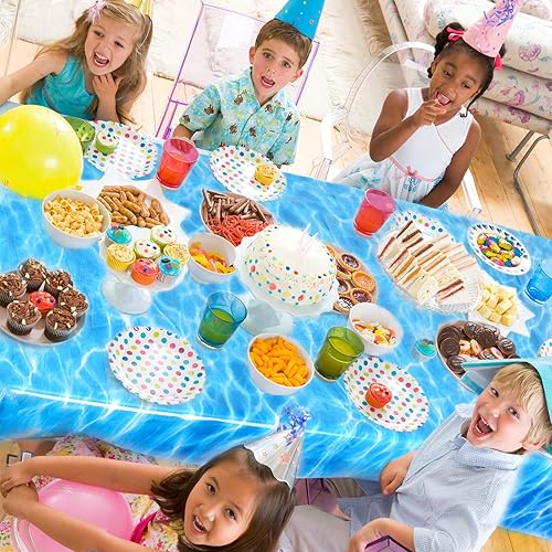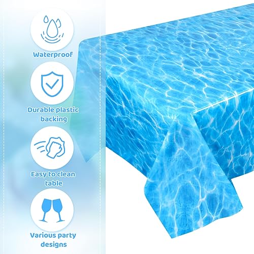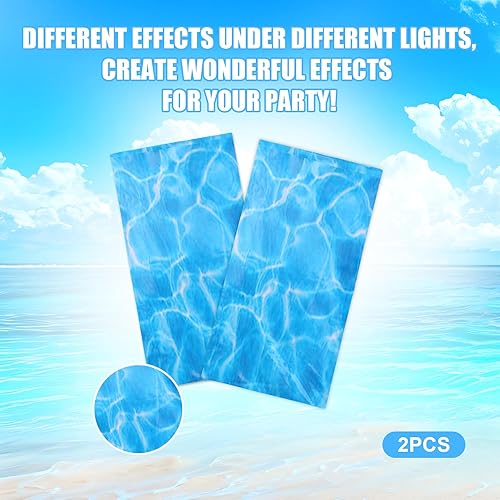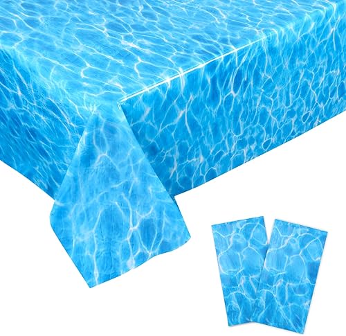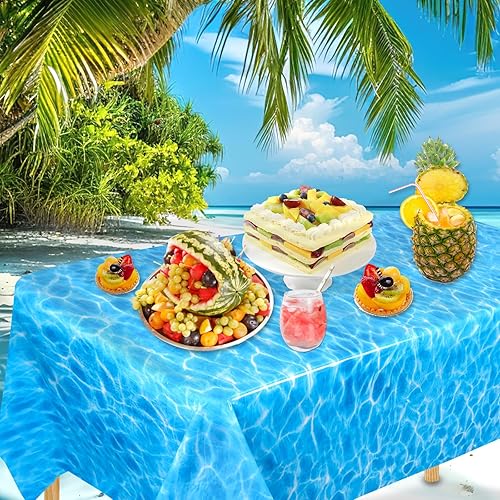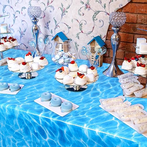 NQEUEPN 2pcs à Usage Unique Nappe Vague Océan, 137x274cm Plastique Couverture de Table Imprimée sous-Marine Bleu Décorations sous la Mer Décor de Fête d'anniversaire Piscine Plage Sirène Fournitures
