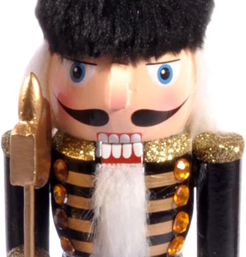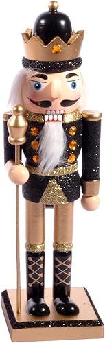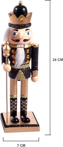 Ciao Christmas Nutcracker Toy Soldier King with Scepter (24cm) Wooden Glittery Decoration, Black/Gold