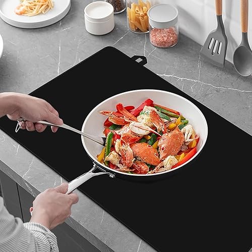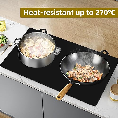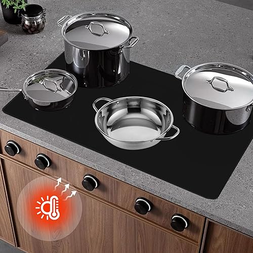 Houkary Protege Couvre Plaque de Cuisson, Tapis pour Plaques à Induction 62x53cm, Couverture de Table de Cuisson Électrique, Tapis de Protection pour Plaques à Induction (Noir)