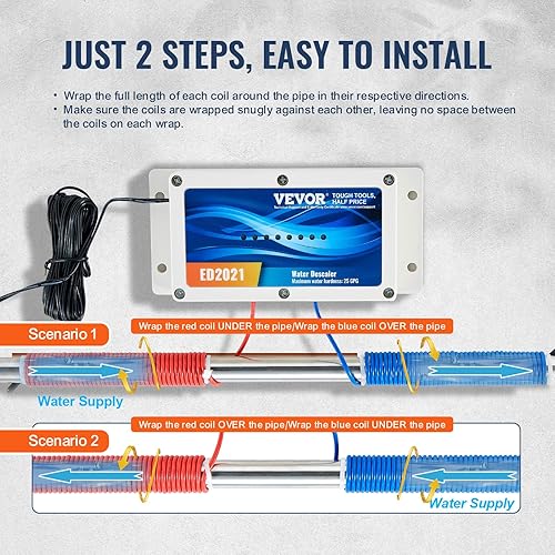 VEVOR Adoucisseur d’Eau sans Sel Électronique pour Toute la Maison, Système de Détartrage pour l'Eau de Ville, Détartreur Durable Facile à Installer, pour Tous les Types de Tuyaux de Plomberie