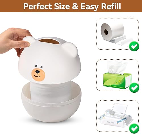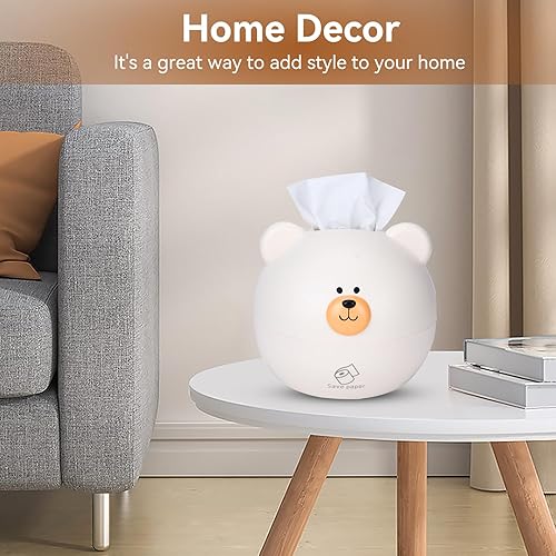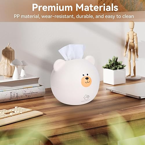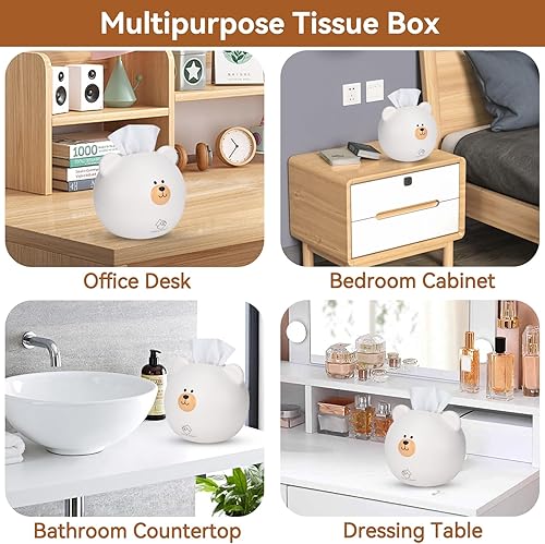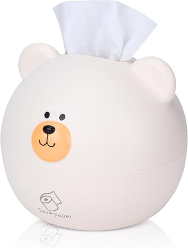 Agatige Couverture de boîte à mouchoirs, Support de Distributeur de mouchoirs en Papier Dessin animé Ours pour la Maison d'enfants Salon décoration de Bureau(Blanc)