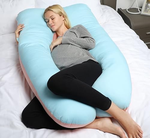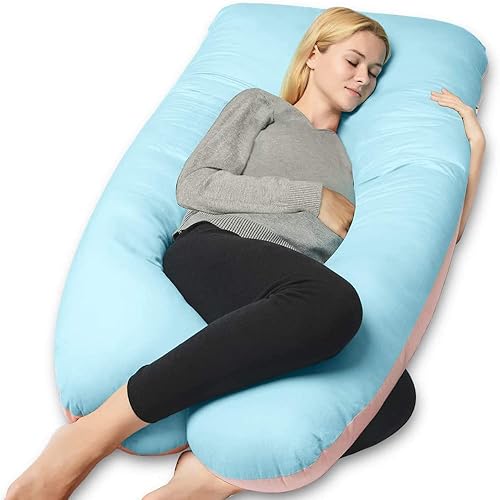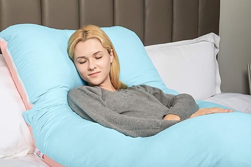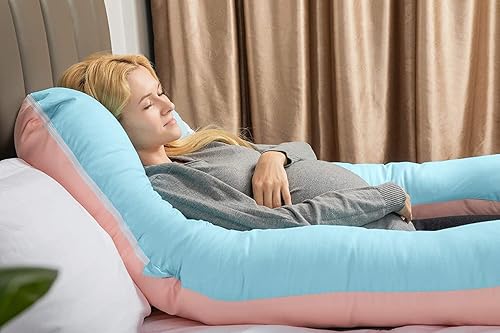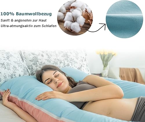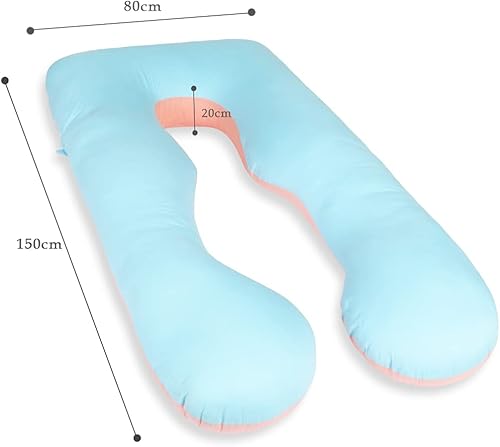 QUEEN ROSE Oreiller de Grossesse, Oreiller de Corps avec la Couverture remplaçable et Lavable (Coton, Bleu et Rose, 150_x_80_cm)