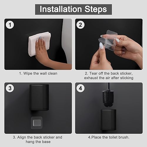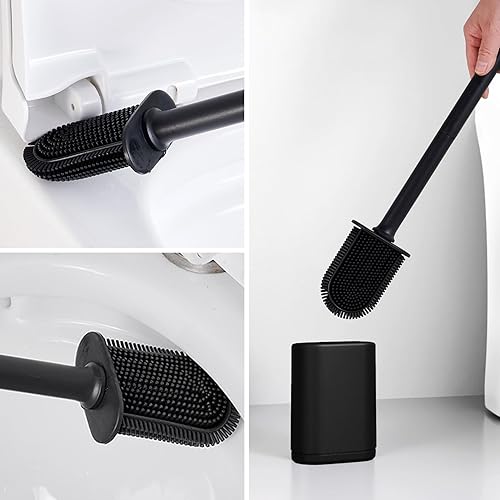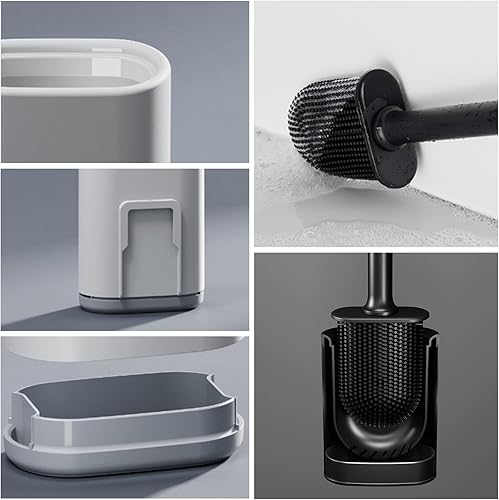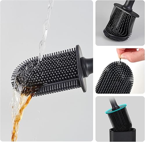 JurciCat Brosse wc silicone Balai toilette wc avec support respirant à séchage rapide(Noir et blanc)Brosse toilettes wc murale et verticale pour toilettes de salle de bains Un Nettoyage en Profondeur