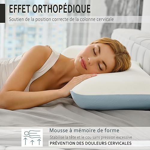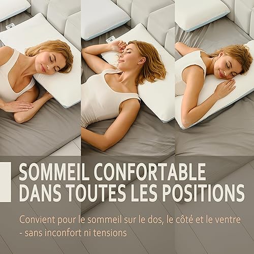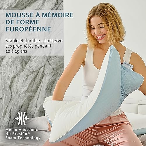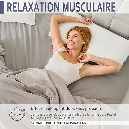 KAMASANA Arctic Oreiller Cervical 40x60 cm – Oreiller Ergonomique en Mousse à Mémoire de Forme – Coussin Orthopédique Rafraîchissant – Soutien pour Douleurs au Cou et Épaules – Confort Durable