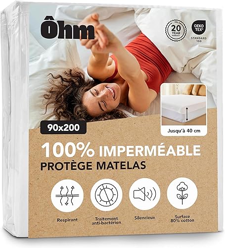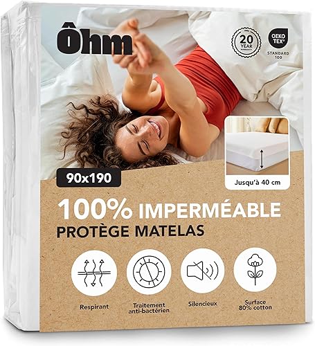 Protège Matelas 135x190 cm | Alèse Imperméable et Imperceptible | Coton Absorbant Hypoallergénique, Traitement Anti-acarien | Compatible Bonnet Jusqu'à 40 cm | Certifié Oeko-TEX | Ôhm