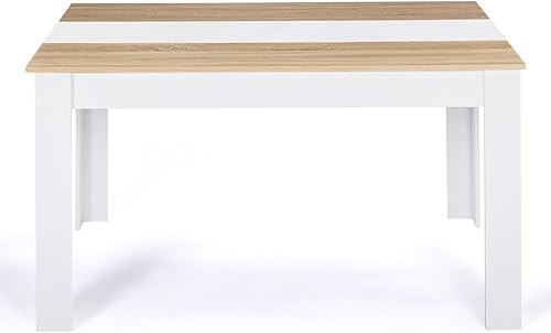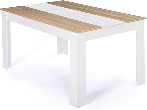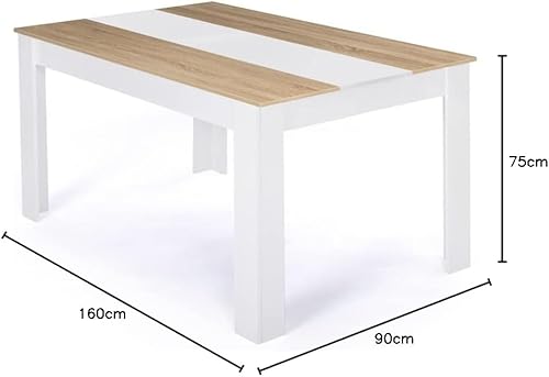 IDMarket - Table à Manger Rectangle Georgia 8 Personnes Blanche et Imitation hêtre 160 x 90 cm