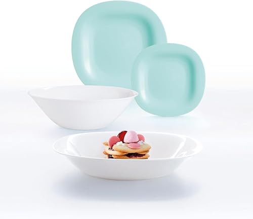 Luminarc - Service d'assiettes pour 6 personnes, 19 pièces - Modèle mignon tourquoise/blanc