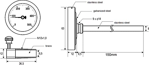 ESCO Thermomètre pour four à pizza, four à pain, chambre de fumage, four à bois, 500 °C