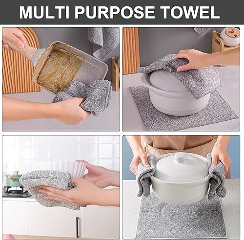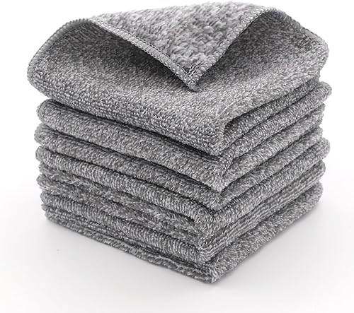 6 Pièces Torchons de Cuisine, Torchons de Cuisine en Microfibre, 30 x 30cm Serviette de Cuisine Gris, Torchon à Vaisselle Doux et Absorbants, Lavable en Machine-Lavable 60° - Design Classique Carré