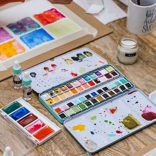 PATIKIL 1ml Godets D'Aquarelle, Lot de 50 Demi-Godets Vides en Plastique pour Peinture à L'Aquarelle, Huiles et Acryliques, Boîtier de Voyage Style 2, Transparent