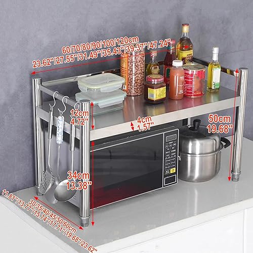 Générique Étagère Micro-ondes en Acier Inoxydable, Support de Four À Micro-ondes Robuste, Support de Rangement Pour Ustensiles de Cuisine, Vaisselle, Boulangerie, Épices(60x40x50cm)