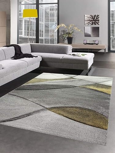 CARPETIA Tapis Moderne Tapis Salon Vagues Jaune Gris Pastel Größe 60x110 cm