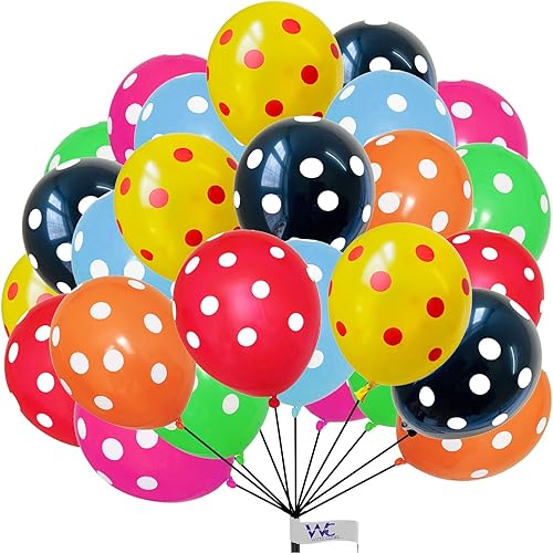 Lot de 50 ballons en latex pour décoration de fête d'anniversaire, mariage, fête prénatale, remise de diplôme, anniversaire de mariage - 25,4 cm - Multicolore à pois