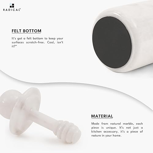 Radicaln Pot à miel en marbre avec couvercle à cuillère Blanc fait main pour la maison et la cuisine – Récipient à miel de table – Pot à miel