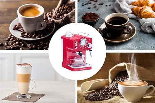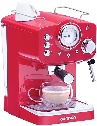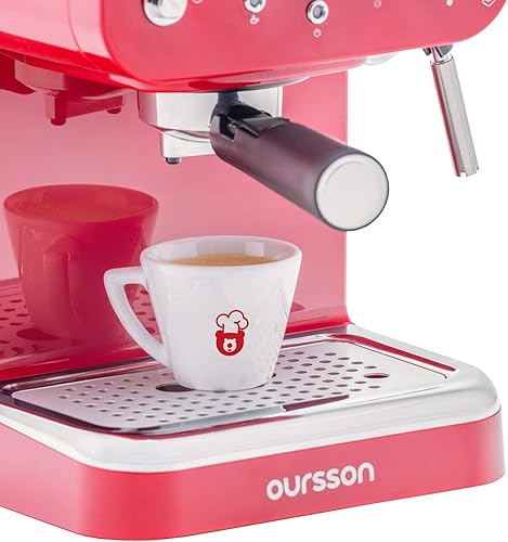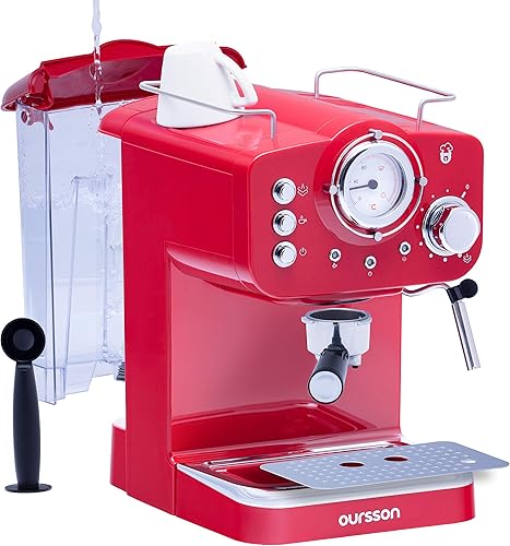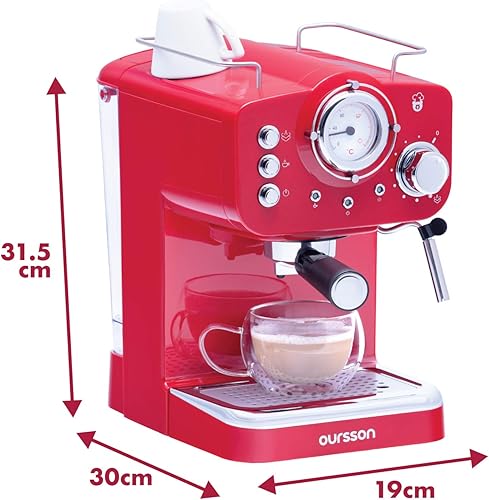 Oursson Machine à Café Expresso et Cappuccino, Buse Vapeur Réglable, Thermomètre, Rétro (Rouge)