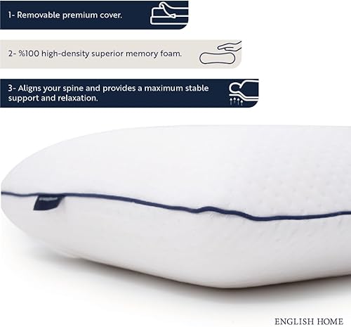 English Home Oreiller Mémoire Forme, Oreiller Ergonomique Cervical, Rectangulaire Oreiller en Mousse à Mémoire de Forme, Coussin Mémoire, taie d’Oreiller Lavable, 40x60x16, Blanc