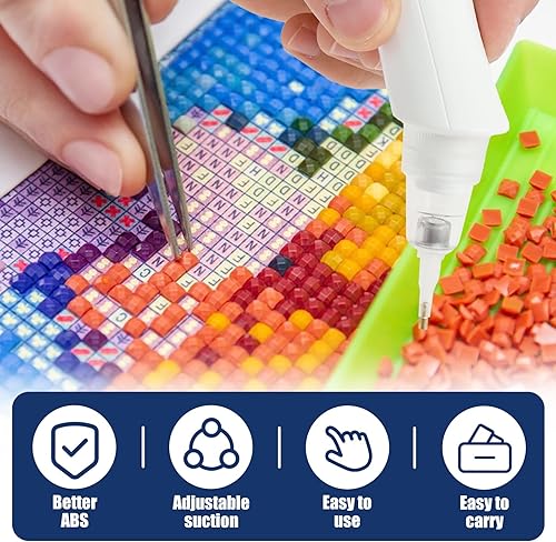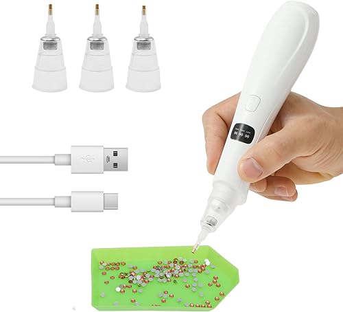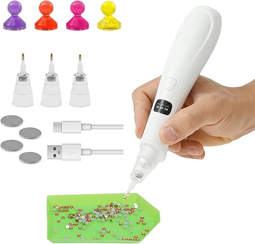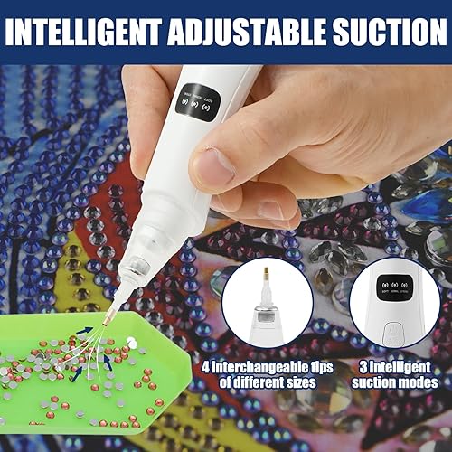 Fyeme Stylo de peinture diamant électrique avec 4 têtes de rechange - Accessoire de peinture diamant - 3 modes d'aspiration intelligents - Chargement USB - Design sans fil - Convient pour les amateurs