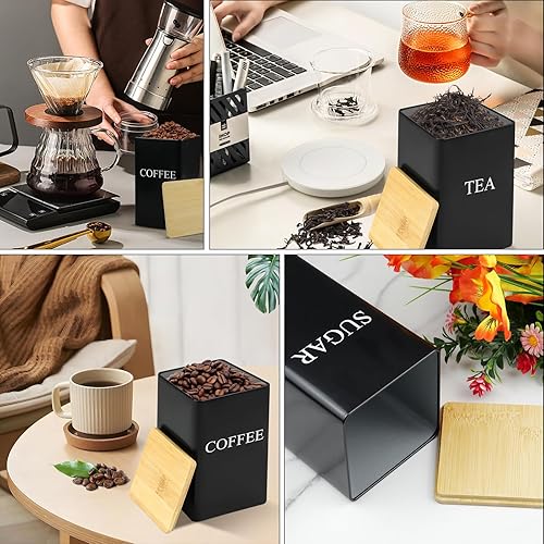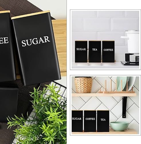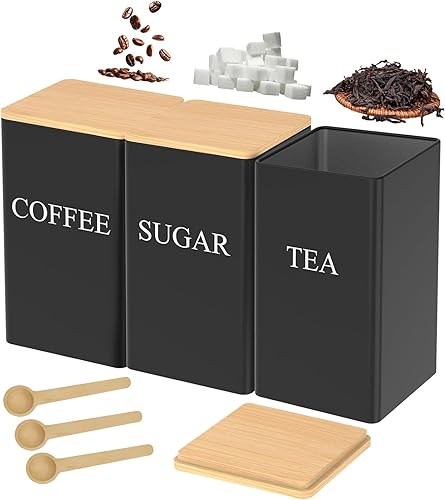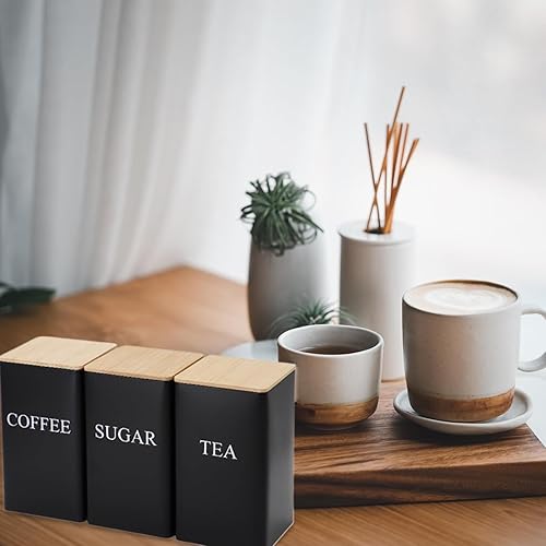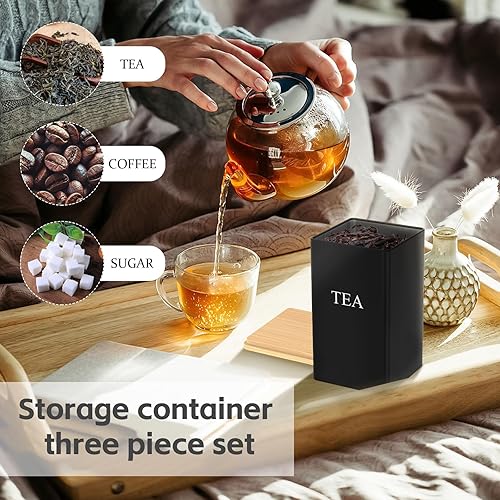 XoeLLe 3 Pièces Boite Hermetique Alimentaire, Bocaux à Épices, Bocaux Rangement Cuisine Noir, Pots et Bocaux de Conservation, pour Stocker des Aliments, Café, Thé, Sucre avec
