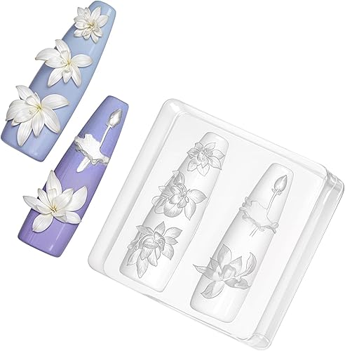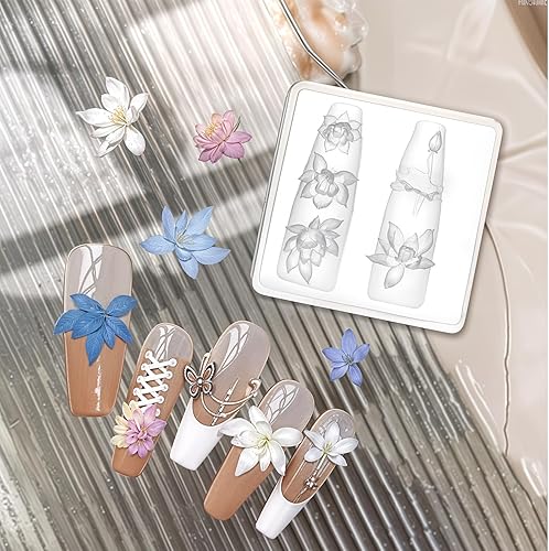 Moules en Silicone pour Nail Art Fleur 3D Moule Fleur Lotus Résine Époxy, Pochoirs Ongles en Gel, Fournitures de Nail Art pour la décoration des Ongles, Moule Résine Silicone pour Fleurs Sculptées
