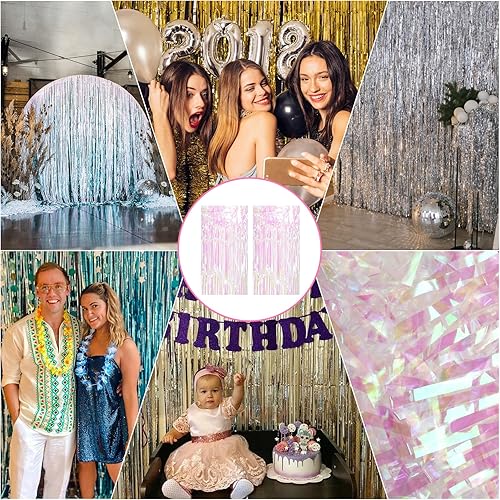 EXIN DEHCEN 2 Pièces Rideau Paillette Decoration Anniversaire, Rideau Metallique A Frange, Rideaux à Franges Brillants Métallique Tinsel pour Décoration Fête, Mariage, Noël Part, Photographie(1 * 2m)