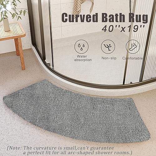 Tapis de bain incurvé en forme d'éventail et tapis de sol antidérapant en peluche absorbant l'eau, lavable en machine, 40,6 x 101,6 cm