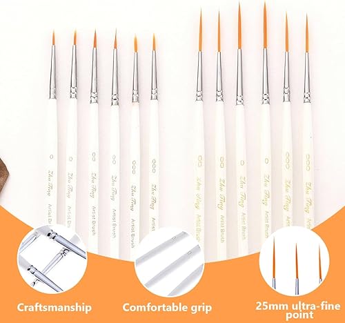 12PCS Pinceaux Peinture, Pinceaux Peinture Acrylique, Pinceau Fin, Pinceau Acrylique pour Huile Aquarelle Gouache Nail Art à L'échelle De Modèle Miniature Figurine Dessin Au Trait