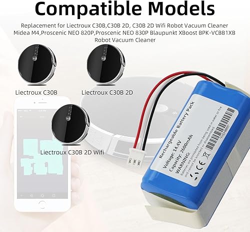 K KYUER 2600mAh MD-C30B LTR300VX Aspirateur Batterie pour Liectroux C30B, C30B 2D,Midea M4,Blaupunkt XBoost BPK-VCBB1XB,Proscenic Neo 820P 830P D071-INR-CH-4S1P Robot Vacuum Cleaner Battery
