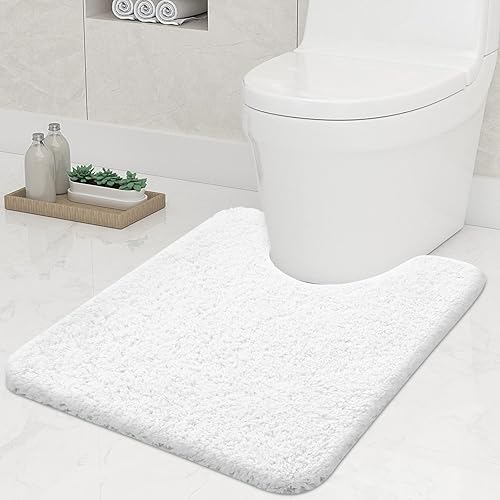 Homaxy Tapis de bain antidérapant doux, avec découpe, 51 x 61 cm, absorbant, pour WC, lavable, blanc