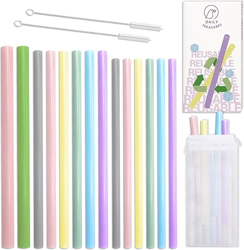 Daily Treasures 14pcs Silicone Buvant des pailles,3 tailles de paille de silicone réutilisables droite avec 2 sacs et 2 brosses-Smoothie pailles pour des gobelets de 30 ou 20 oz(0.5',0.43',0.35')