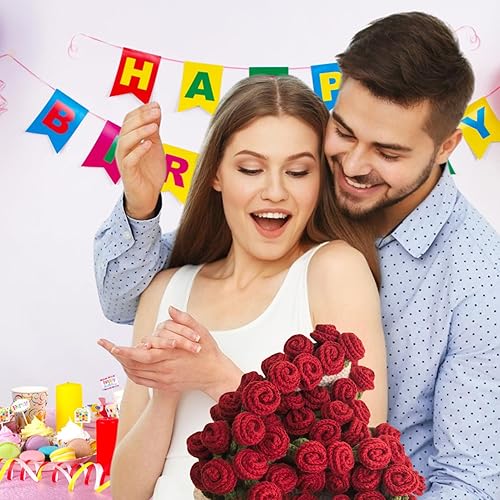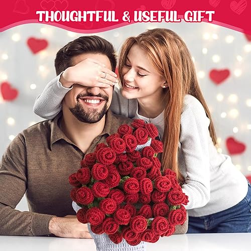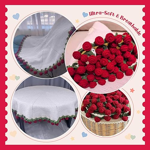 LetCartMaker Couverture en crochet pour bouquet de fleurs faite à la main - Couverture romantique en tricot pour anniversaire, fête des mères, Saint-Valentin