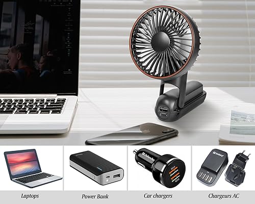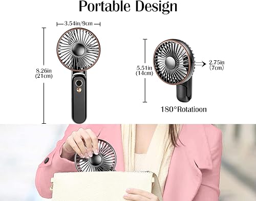 Ventilateur Portable 3600mAh Rechargeable,Ventilateur de Poche avec Affichage Numérique, Mini Ventilateur Silencieux avec 5 Vitesse Réglable, Ventilaeur à Main pour Bureau, Extérieur, Voyage (Noir)